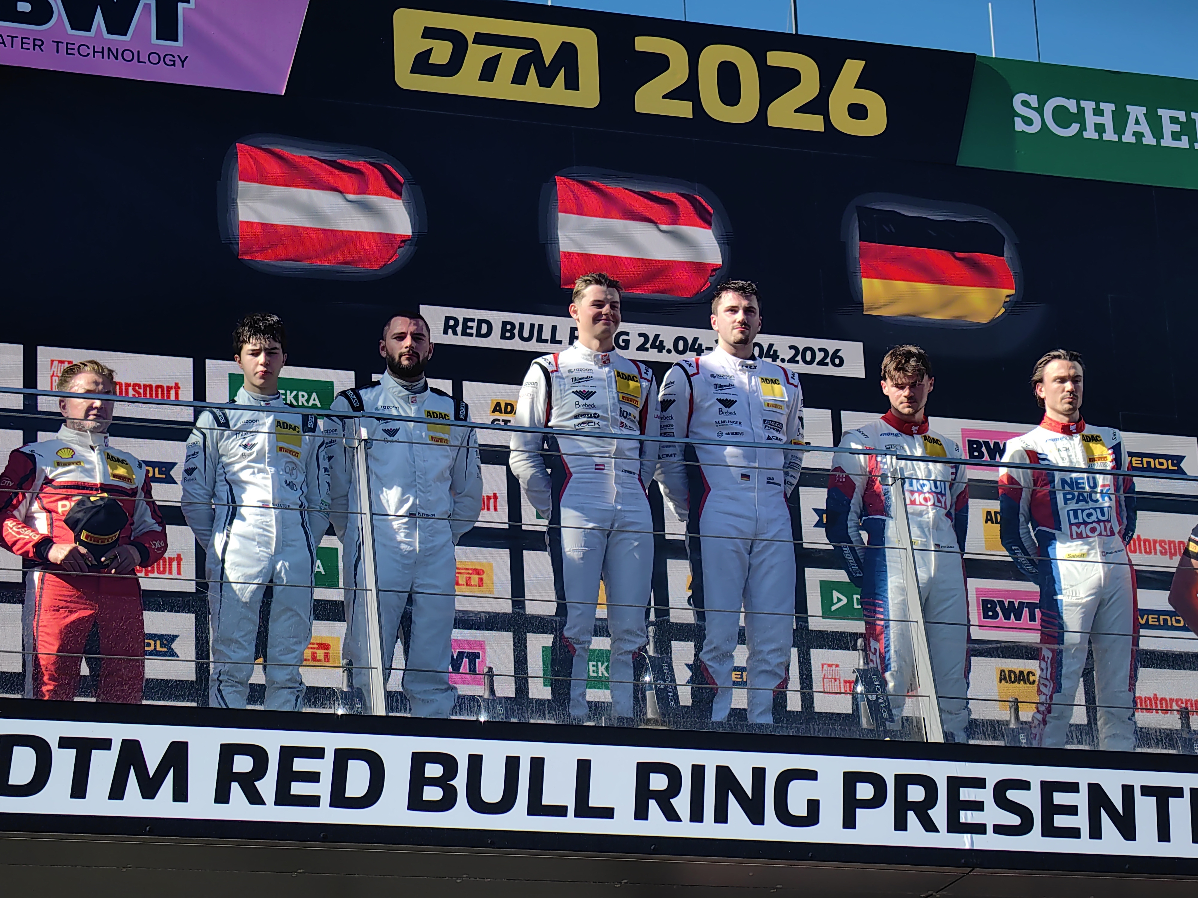 Dvojno slavje moštva Razoon -more than racing je bilo še toliko večje, ker gre za Avstrijsko moštvo, ki je s tem imelo sto odstotni izkupiček na domači dirki. Največ zanimanja medijev, novinarjev in TV snemalcev pa je zagotovo požel Mark Kastelic, ki je bil na nemških tleh v prvenstvu GT Masters in DTM, do danes povsem neznano dirkaško ime. Lani je nastopal na italijanskem, evropskem in špansko-portugalskem prvenstvu razreda GT4, letos pa se je preselil še stopničko višje, v močnejši, hitrejši in elitnejši razred GT3. Lansko letni avtomobilist leta v Sloveniji po izboru matične zveze AŠ SLO, je imel na polnih tribunah dirkališča Red Bull ring v Spielbergu tudi nemalo domačih podpornikov in navijačev.