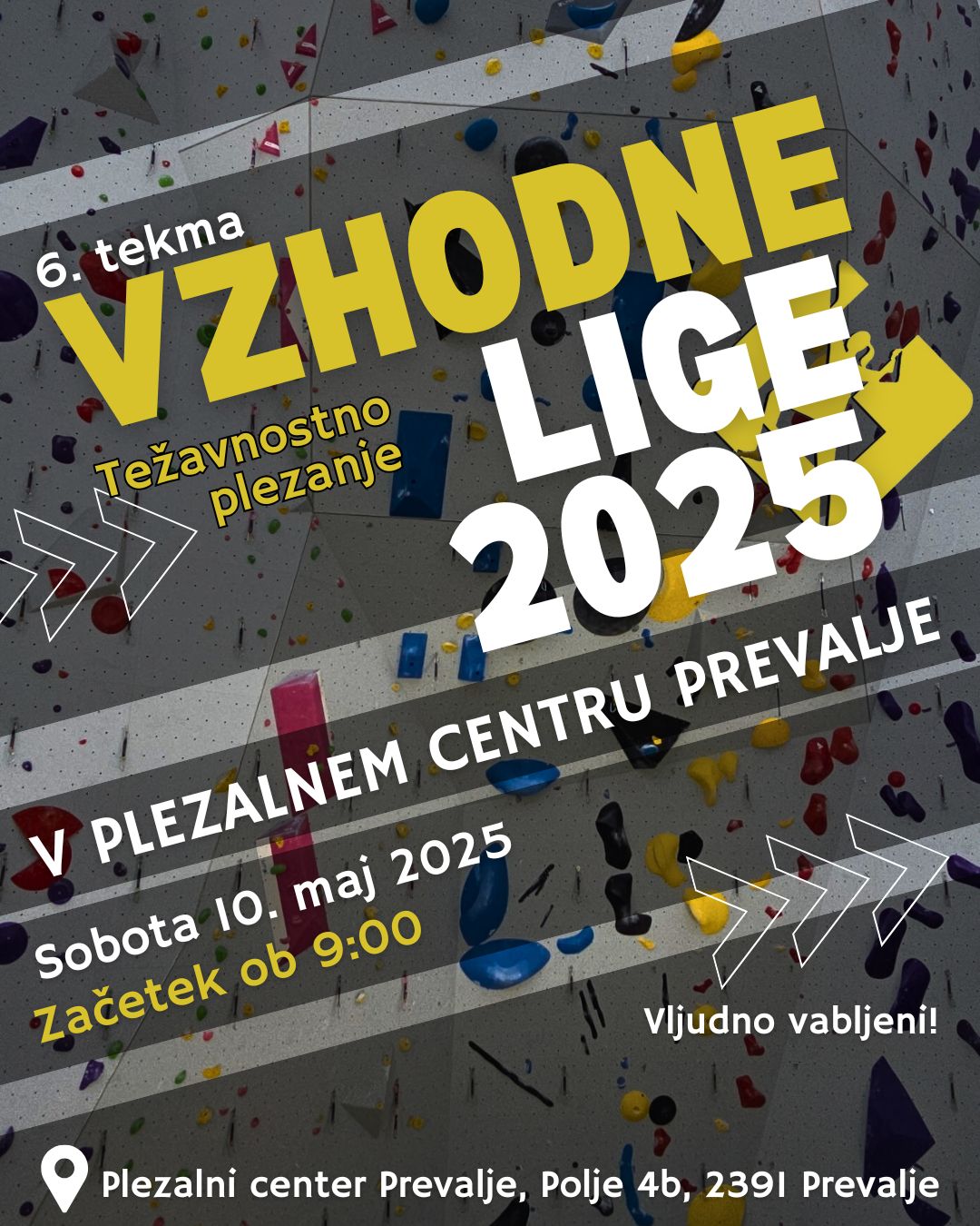 Vzhodna liga je prvenstvo v športnem plezanju, ki je namenjeno predvsem mlajšim kategorijam od 8. do 14. leta. Gre za nekakšno odskočno desko pri nabiranju tekmovalnih izkušenj za kasnejši lažji prehod na tekme državnega prvenstva. Šesto, in s tem tudi zadnjo tekmo letošnje sezone, bodo izpeljali na Prevaljah. Predsednik Koroškega plezalnega kluba Matej Flis: