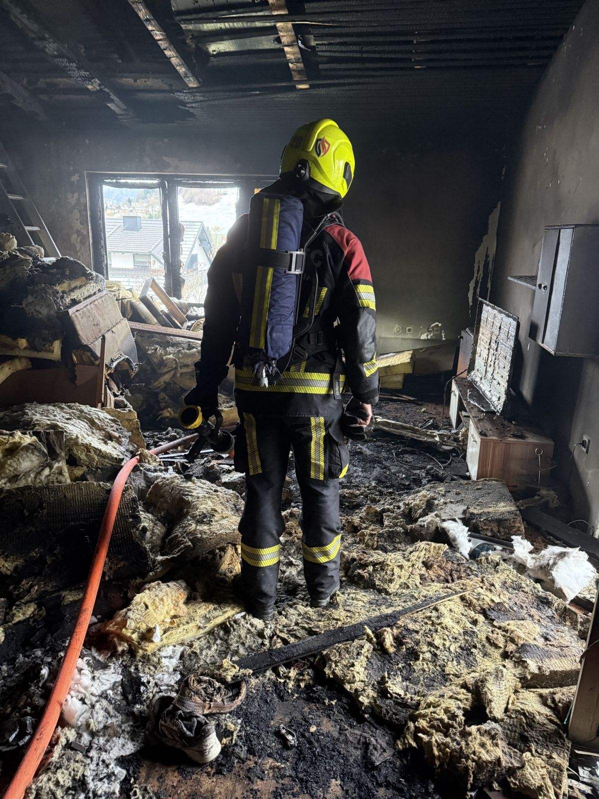 Požar se je medtem razširil na podstrešje, zato so potrebovali pomoč avtolestve. Plameni so popolnoma uničili notranji del ostrešja.