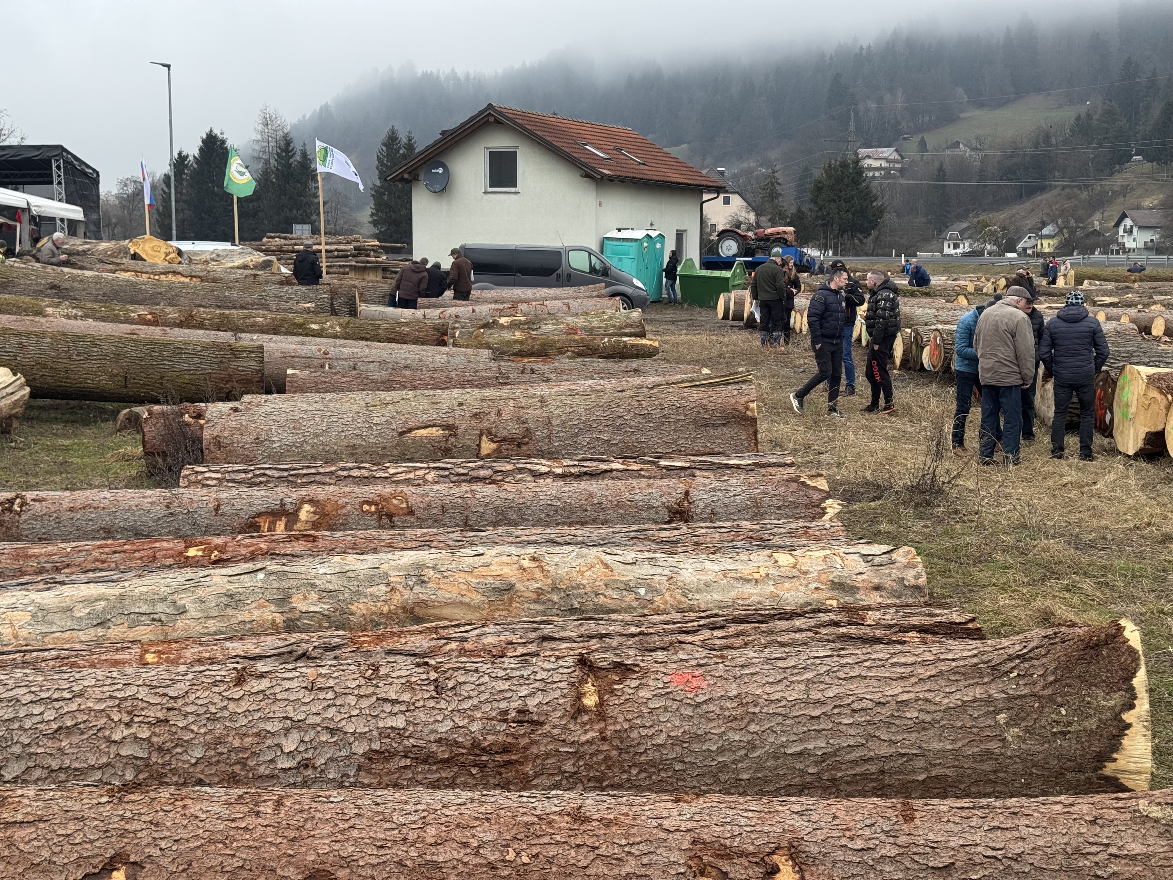 Ivana Pridigar s Svetega Antona na Pohorju z družino je na licitacijo pripeljala tri hlode smreke. Za enega od hlodov so iztržili najboljšo ceno, to je 1111 evrov za kubični meter oziroma skoraj 4000 evrov za hlod.