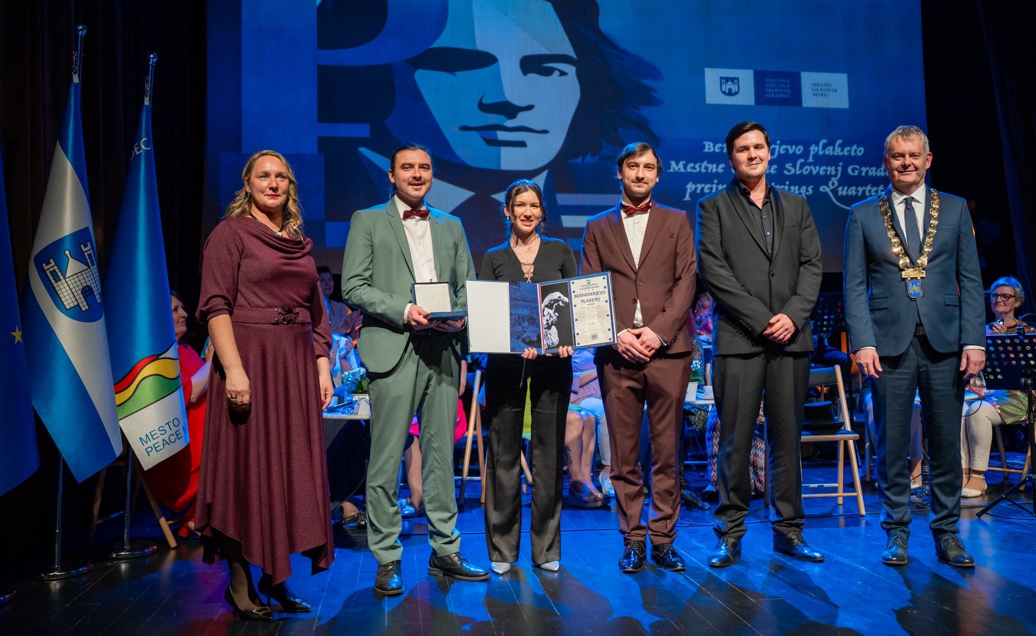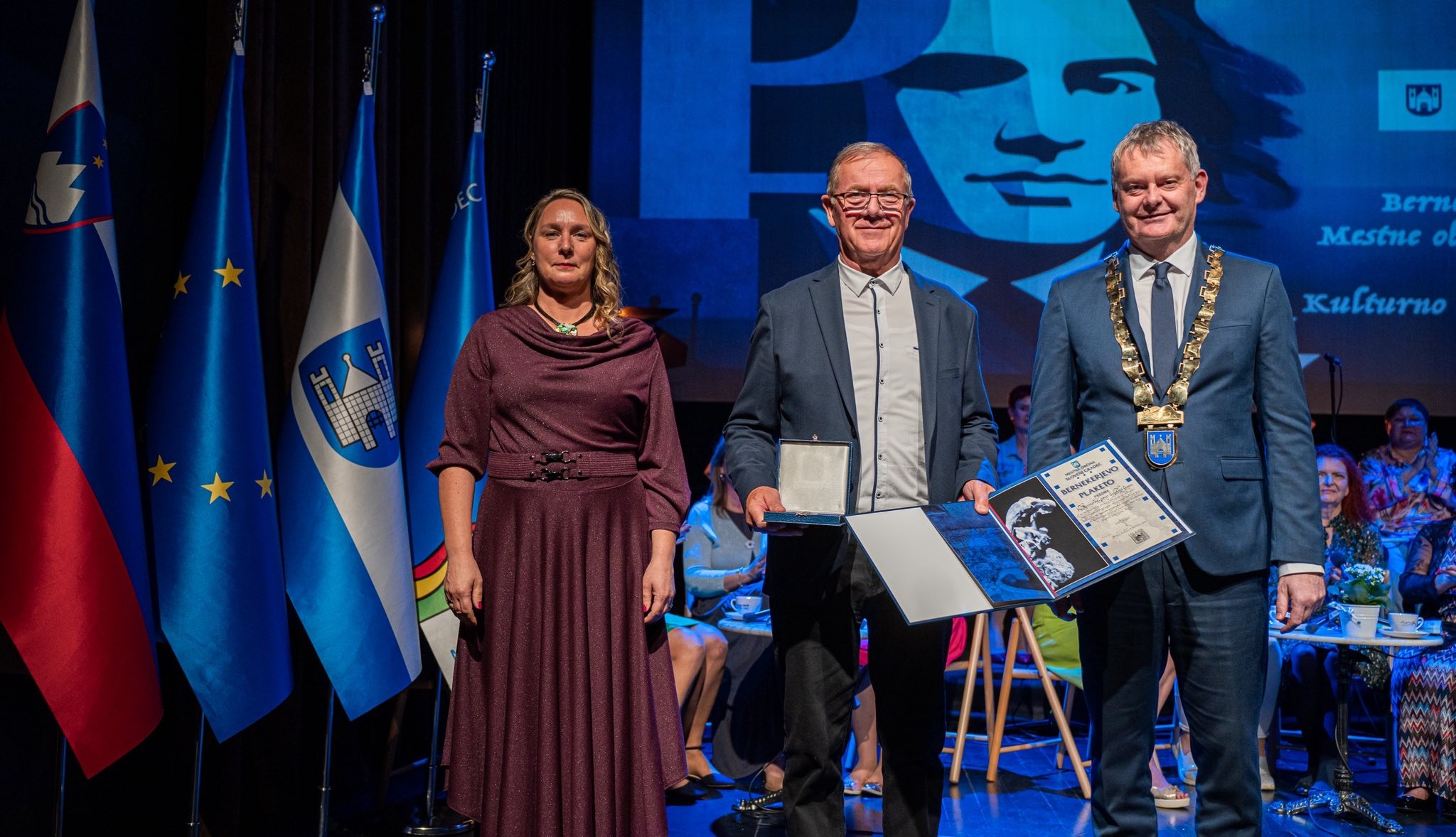 Župan mestne občine Slovenj Gradec Tilen Klugler je sinoči, na slavnostni prireditvi ob slovenskem kulturnem prazniku v slovenjgraškem kulturnem domu izročil Bernekerjeva odličja za dosežke v kulturi izbranim kulturnikom, med njimi so ljubitelji in akademsko izobraženi.