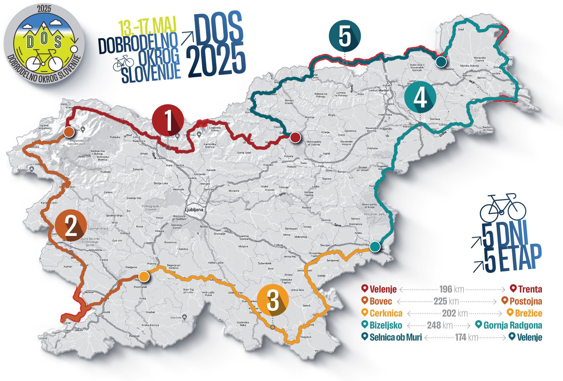 Pet dni, pet etap, več kot 1.100 kilometrov. Za piko na i pa še dobrodelnost. Vse to je največji vseslovenski humanitarni kolesarski dogodek Dobrodelno okrog Slovenije (DOS), ki ga letos gosti Mestna občina Velenje.
