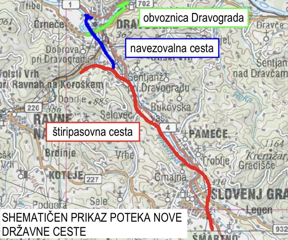 Država z državnim prostorskim načrtom v prostor ne umešča le odsek štiripasovnice na odseku Slovenj Gradec jug-Dravograd, temveč tudi pet in pol kilometra obvoznih in navezovalnih cest na območju Dravograda.
