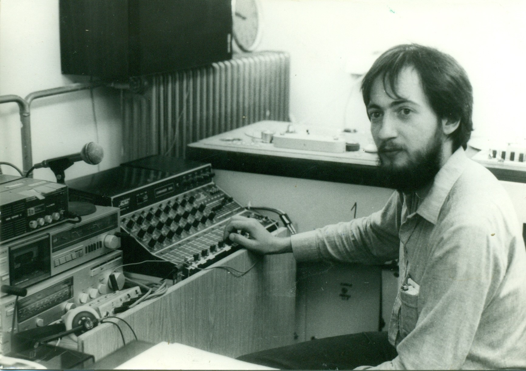 Na arhivski fotografiji Samo Horvat v začasni režiji ob selitvi v današnje radijske prostore leta 1983