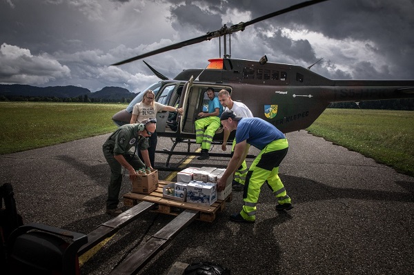 Slovenska vojska s prostovoljci in gasilci avgusta 2023 na slovenjgraškem letališču. Foto: Voranc Vogel/Delo
