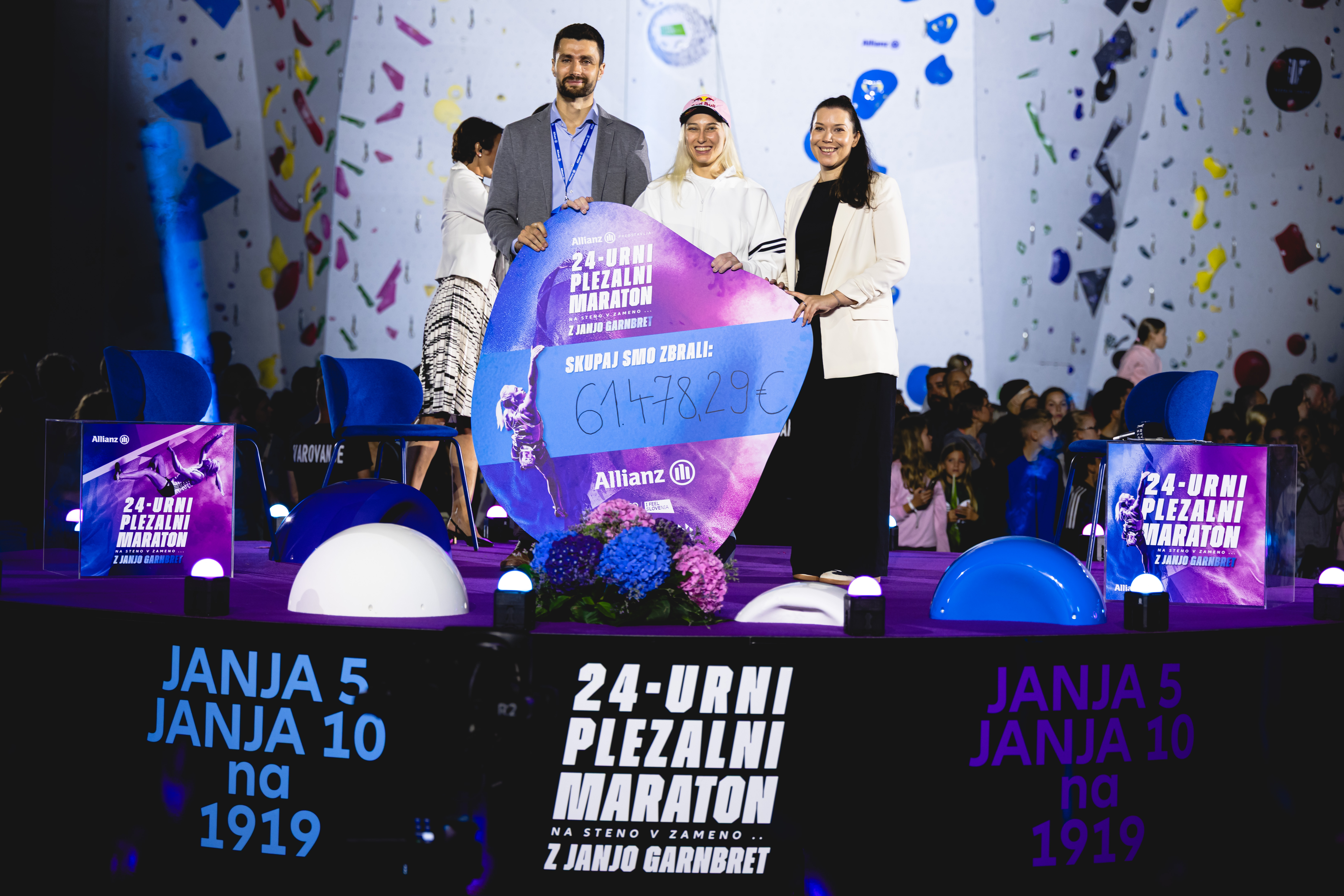 S pomočjo bučne podpore več kot 2000 plezalcev in gledalcev je Janji uspelo! Poleg zastavljenih 100 preplezanih najtežjih smeri Janje Garnbret je v sklad Botrstva v športu prispevalo tudi 1.781 preplezanih smeri in 4.820 preplezanih balvanov ostalih plezalcev, kar je skupaj v sklad dodalo 15.000 EUR, in Allianzov prispevek dvignilo na 35.000 evrov. Skupaj s prispevkom od prodanih vstopnic, SMS donacijami Janja5 ali Janja10 na 1919 in donacije Občine Velenje je končni dobrodelni znesek, ki bo namenjen Botrstvu v športu samo z naslova 24-urnega plezalnega maratona, znašal 61.478,29 EUR. To dokazuje, da je moč športa veliko več kot le rezultat. Je moč povezanosti, solidarnosti in vztrajnosti, ki seže daleč preko plezalne stene.