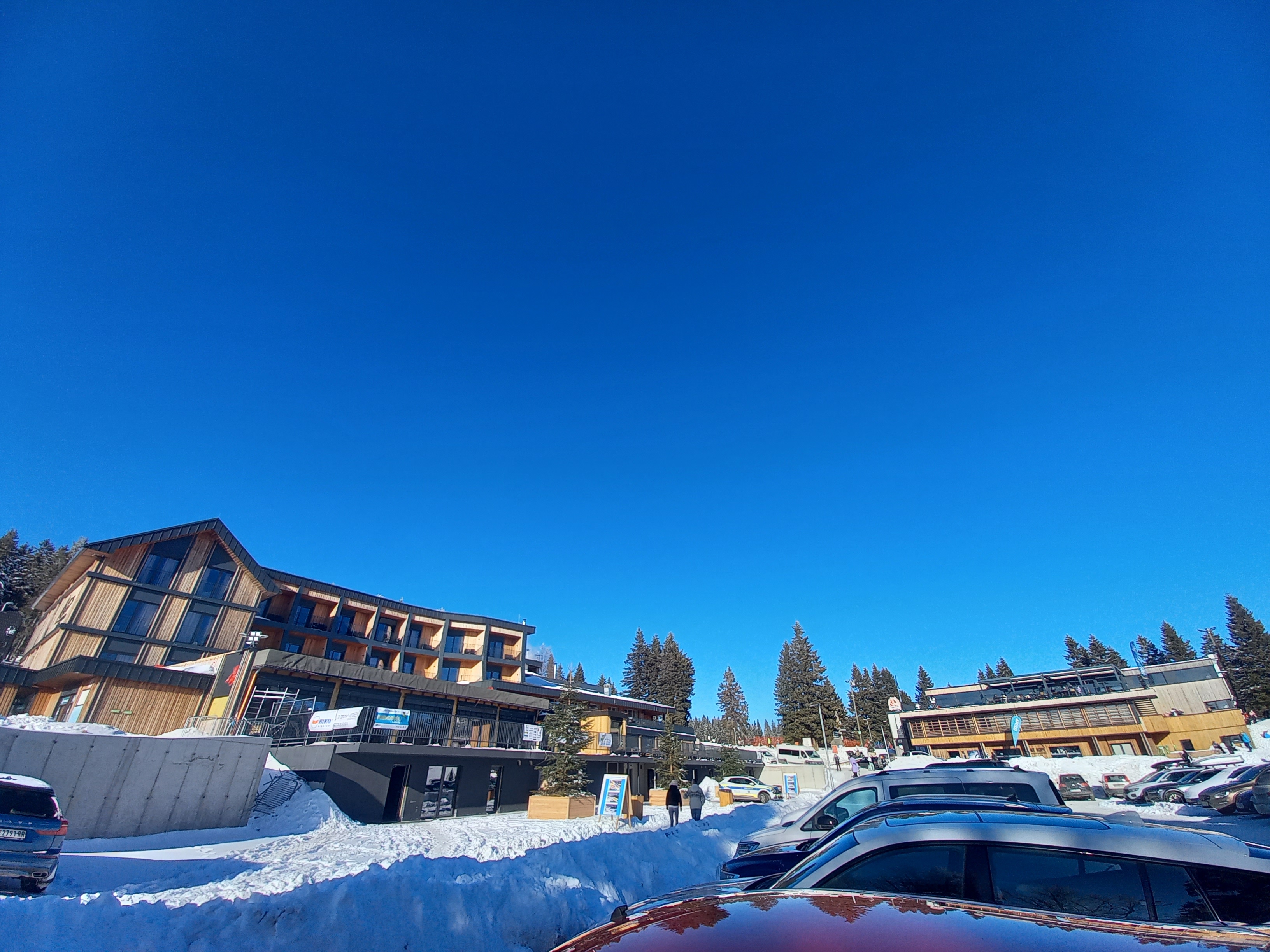 Na Kopah so bila parkirišča zasedena že vse od odcepa za Kaštivnik, je pa zato smučarje do smučišča in nazaj do parkiranega jeklenega konjička prevažal prav za to namenjen kombi.