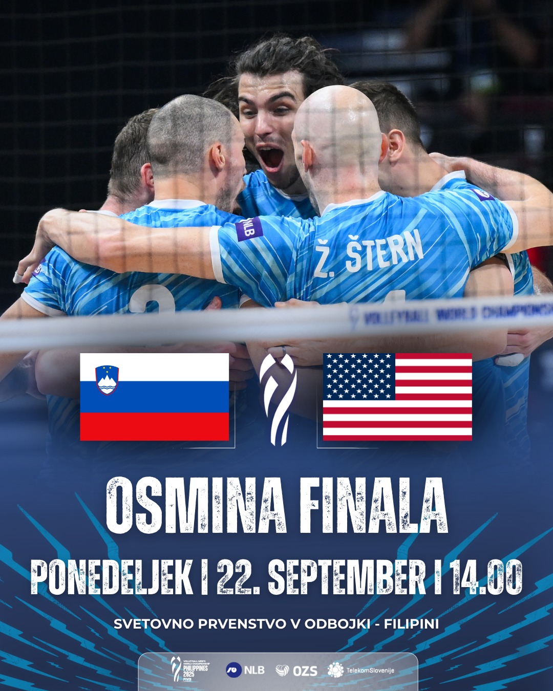 Slovenska moška odbojkarska reprezentanca, ki si je z zmago nad Nemčijo na svetovnem prvenstvu v Manili zagotovila uvrstitev v izločilne boje, se bo za četrtfinale pomerila z izbrano vrsto ZDA. Obračun na prvenstvu, polnem presenečenj, bo na sporedu danes ob 14. uri.