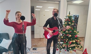 V sredinem jutru je med klepetom zapela v živo tudi v našem studiu.