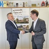 Župan Občine Mislinja Bojan Borovnik in član uprave podjetja Pomgrad d.d., Boris Sapač, sta podpisala izvajalsko pogodbo za novogradnjo vrtca Mislinja.